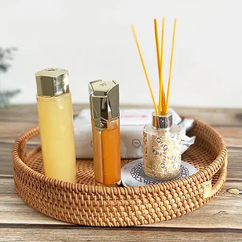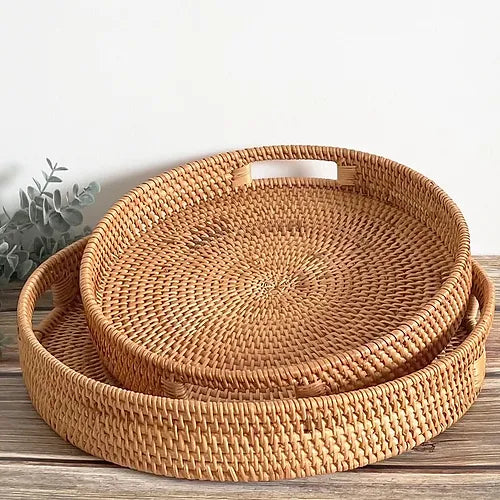 This beautiful cane tray is a versatile and stylish addition to any home. Made from natural cane, it is both durable and elegant. The round shape and two cut handles make it easy to carry, and the open design allows it to be used for a variety of purposes.