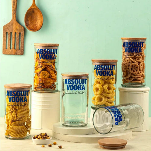 Introducing TopCut Jars, an elegant collection of upcycled jars crafted from premium Absolut Top Cut vodka bottles. Each jar is expertly repurposed, combining the sleek, modern design of the original bottle with a hand-crafted wooden lid, creating a perfect blend of sustainability and style. These versatile jars are ideal for storage, decor, or gifting, offering a refined, eco-friendly solution to everyday needs.