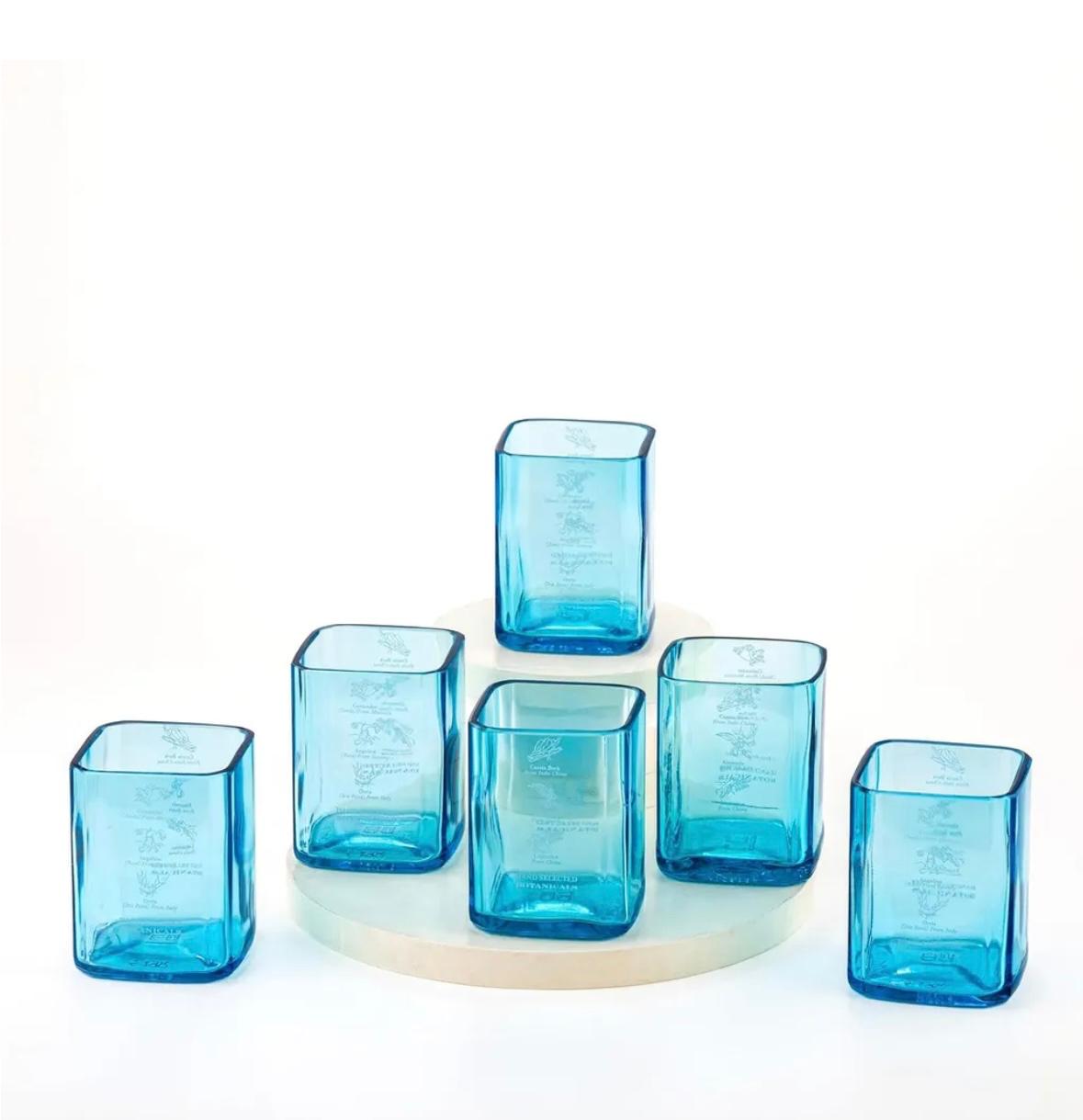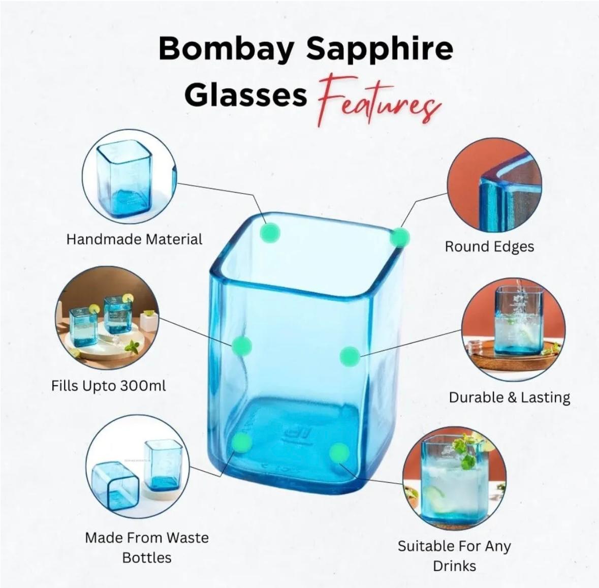 Eco-Friendly Craftsmanship: Each glass is made from upcycled Bombay Sapphire gin bottles, reducing waste and giving new life to these iconic blue vessels.