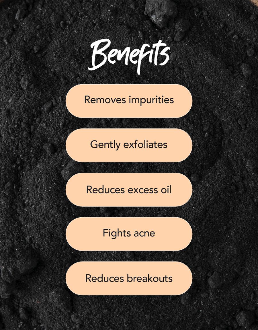 - Activated Charcoal: Deeply cleanses and detoxifies skin by drawing out impurities and toxins.