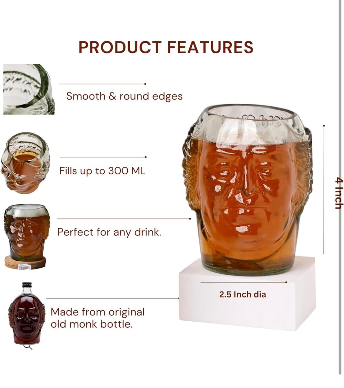 Unique Design: No two glasses are the same. Each one retains the original curves, textures, and character of the Old Monk bottle, making every piece distinct.