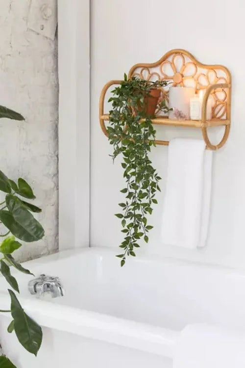 This rattan towel wall hanging with storage space for shampoos is the perfect way to keep your towels and toiletries organized and within reach. The natural rattan construction is both stylish and durable, and the large storage space can accommodate a variety of items, including towels, shampoos, conditioners, and other bath products. The hanging design frees up valuable counter space, and the sturdy construction ensures that your towels and toiletries will stay put.