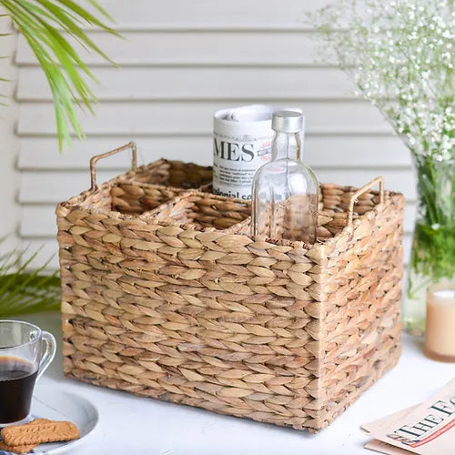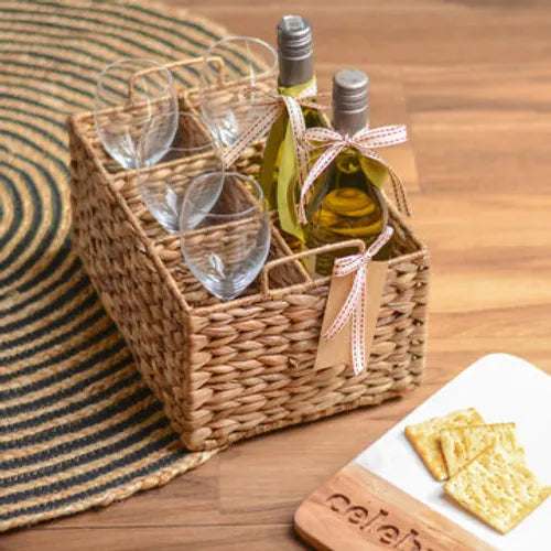 This beautiful water hyacinth bottle caddy is a unique and sustainable way to store your bottles. The water hyacinth leaves are woven together to create a sturdy and durable caddy that can hold up to four bottles. The caddy is also water-resistant, so you can easily clean it with a damp cloth.